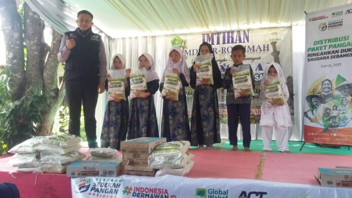 GARUT,koran-samudra.com-Gerakan Pangan Nasional(GSPN)yang merupakan sebuah program baru yang diluncurkan oleh ACT , saat ini terus digencarkan untuk disalurkan kepada yang berhak. Salah-satu penerima manfaat yang menjadi sasaran dalam program ini adalah anak yatim dan dhuafa.Hari kamis(18/03/21), Bertempat di Perumahan Abdi Negara1 Desa Sindanggalih Kecamatan Karangpawitan Garut.