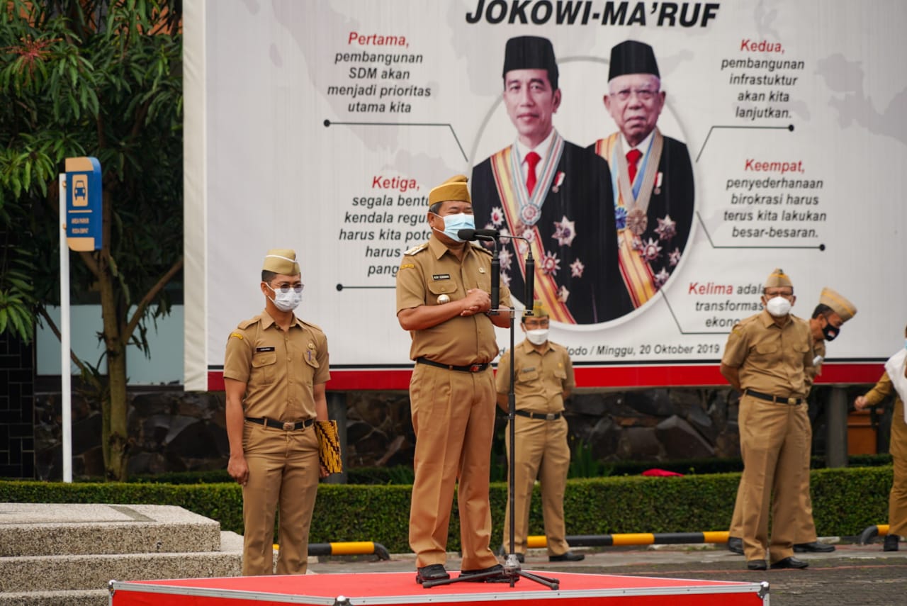 GARUT,koran-samudra.com– Bupati Garut, Rudy Gunawan melantik 4 Pejabat Tinggi Pratama dalam apel gabungan terbatas, di Lapangan Sekretariat Daerah, Kecamatan Tarogong Kidul, Kabupaten Garut, Senin (8/3/2021).