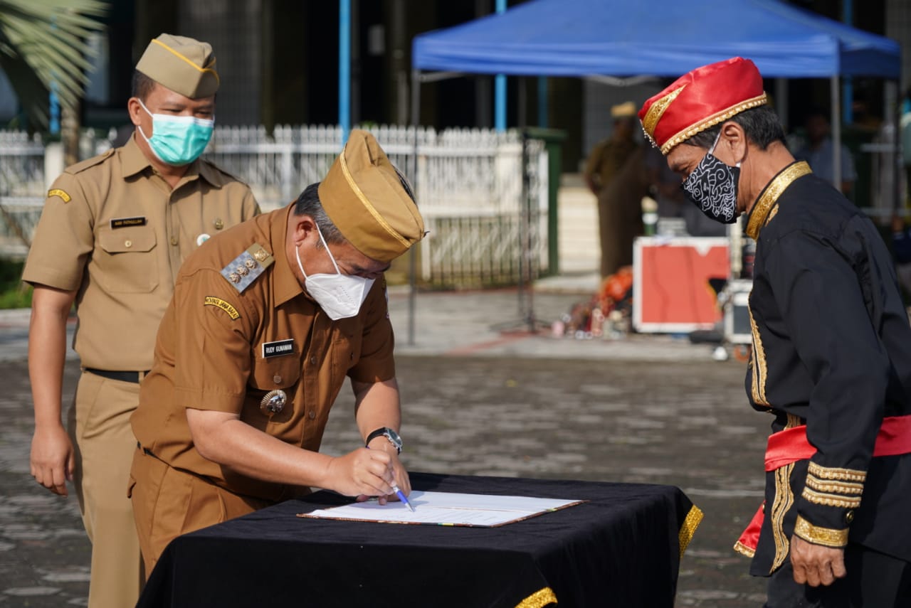 GARUT,koran-samudra.com – Bupati Garut, Rudy Gunawan, melantik pengurus Forum Pembauran Kebangsaan (FPK) Kabupaten Garut, pada saat pelaksanaan Apel Gabungan di Lapang Sekretariat Daerah (Setda), di Jalan Pembangunan, Kecamatan Tarogong Kidul, Kabupaten Garut, Senin (22/2/2021).