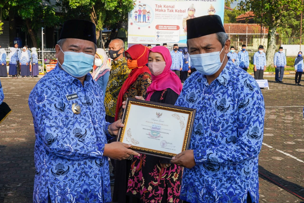 Pada kesempatan ini juga bupati atas nama pemeritah melepas pegawai negeri sipil yang memasuki masa pensiun periode bulan Januari – Maret 2021 sebanyak 256 orang serta penyerahan uang duka secara simbolis kepada keluarga PNS yang meninggal dunia sebanyak 28 orang.
