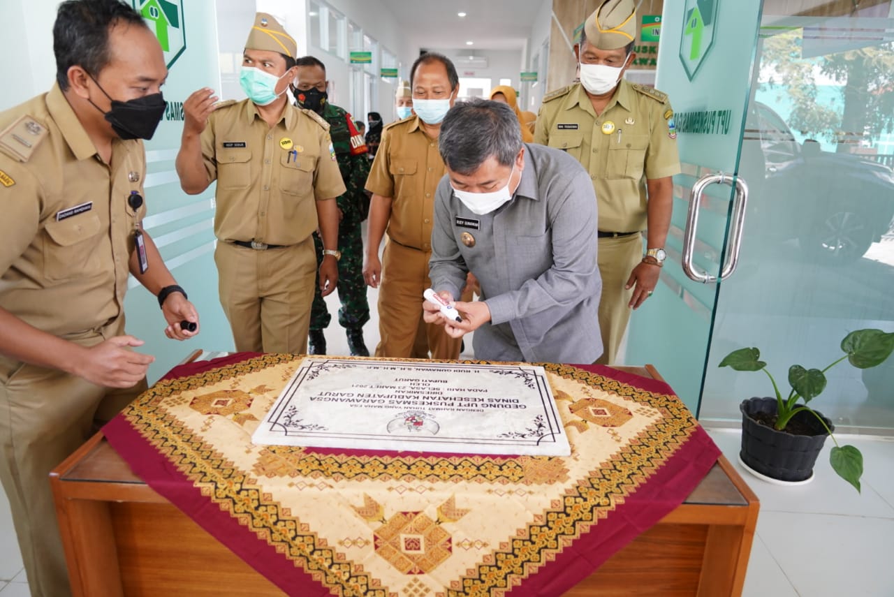 GARUT,koran-samudra.com– Setelah melaksanakan kegiatan deklarasi bebas ODF (Open Defecation Free) di Aula Desa Tegal Panjang, Bupati Garut, Rudy Gunawan kemudian meresmikan gedung Puskesmas Garawangsa Kecamatan Sucinaraja, Selasa (23/3/2021). Peresmian dihadir unsur Forkopimcam (Forum Komunikasi Pimpinan Kecamatan) Sucinaraja dan Kepala Dinas Kesehatan, dr. Maskut Farid.