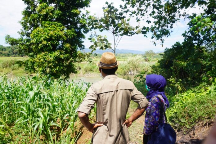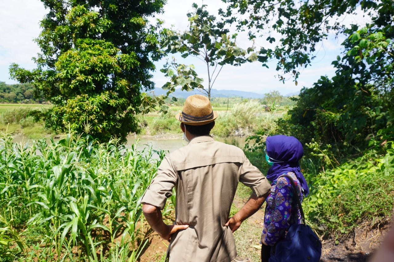 Bupati Kang Jimat (Sapaan akrab) menyusuri jalan setapak hingga sampai ke bibir sungai Kali Cilamatan, yang sedianya melalui jalur tersebut akan segera dibuka jalan untuk akses jalan lingkar kota Subang.
