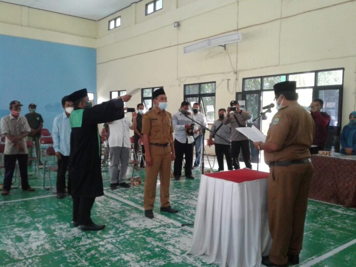 Pelantikan PJS Kepala Desa Pusakaratu dilaksanakan di aula Kantor Kecamatan Pusakanagara, rabu (14/07/2021)