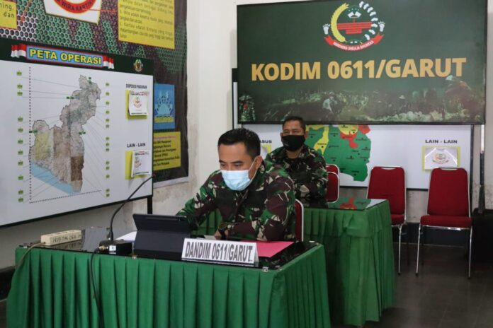 Garut.koran-samudra.com.- Dandim 0611/Garut. .Letkol Czi Dr.Deni Iskandar, S.T., M.Han., M.D.M., CAN besrta Pasi Ops Kodim 0611/Garut Kapten Inf Ridwan mengikuti Video Conference secara Virtual dengan Pangdam III/Siliwangi di ruang Vicon Makodim 0611/Garut jln. Veteran no. 1 Kel. Kota kulon Kec. Garut Kota Kab. Garut. Senin 17/5/2021