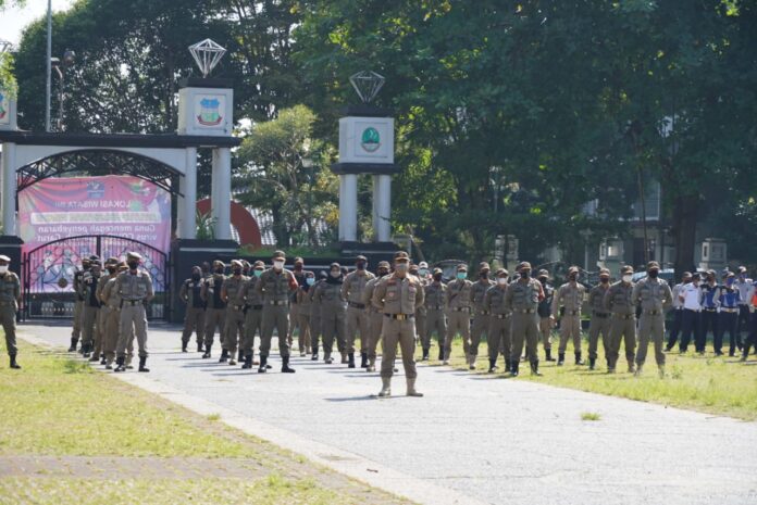 GARUT, koran-samudra.com – Pemerintah Kabupaten (Pemkab) Garut menggelar Apel Gelar Pasukan Persiapan PPKM (Pemberlakuan Pembatasan Kegiatan Masyarakat) Mikro Darurat di Kabupaten Garut yang dilaksakan di Lapang Otto Iskandardinata (Alun-alun ) Garut, Kecamatan Garut Kota, Kabupaten Garut, Jum’at (2/7/2021).