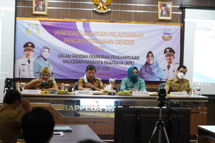 GARUT,koran-samudra.com– Pemerintah Kabupaten Garut melaksanakan Verifikasi Lapangan Pelaksanaan Pengarusutamaan Gender (PUG) Dalam Rangka Pemberian Penghargaan Anugerah Parahita Ekapraya (APE) Tahun 2020 yang diselenggarakan di Aula Badan Perencanaan Pembangunan Daerah (BAPPEDA), Kecamatan Tarogong Kidul, Kabupaten Garut, Senin (5/4/2021). Acara ini dihadiri oleh para SKPD (Satuan Kerja Perangkat Daerah) di Kabupaten Garut.