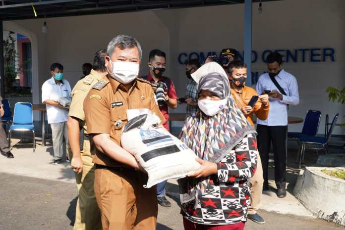 Garut,koran-samudra.com – Pemerintah Kabupaten ( Pemkab ) Garut menyerahkan secara simbolis bantuan beras PPKM dari pemerintah pusat yang disaksikan oleh seluruh unsur Forkopimda kabupaten Garut, Kepala Dinas Sosial, Asda bidang pemerintahan dan perwakilan warga Garut.Bertempat di gedung Pendopo kabupaten Garut, Senin 19 Juli 2021.