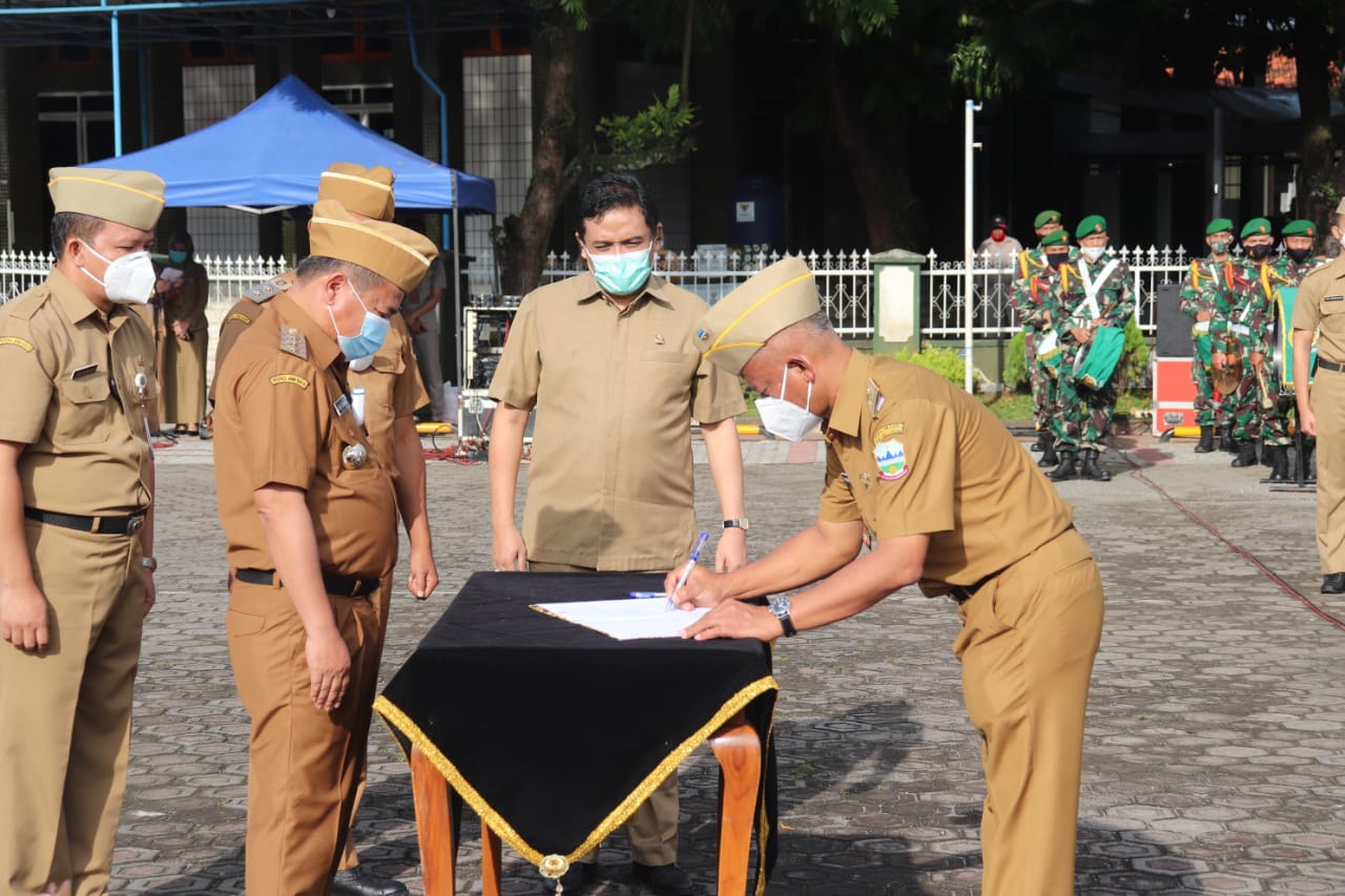 Bertindak selaku Inspektur Upacara Bupati Garut (H. Rudi Gunawan, SH., MH, MP) dan Komandan Upacara Kepala Pengadaan Barang dan Jasa (Margianto, M.Si), yang diikuti oleh peserta apel sekitar 200 ASN Pemda Garut.