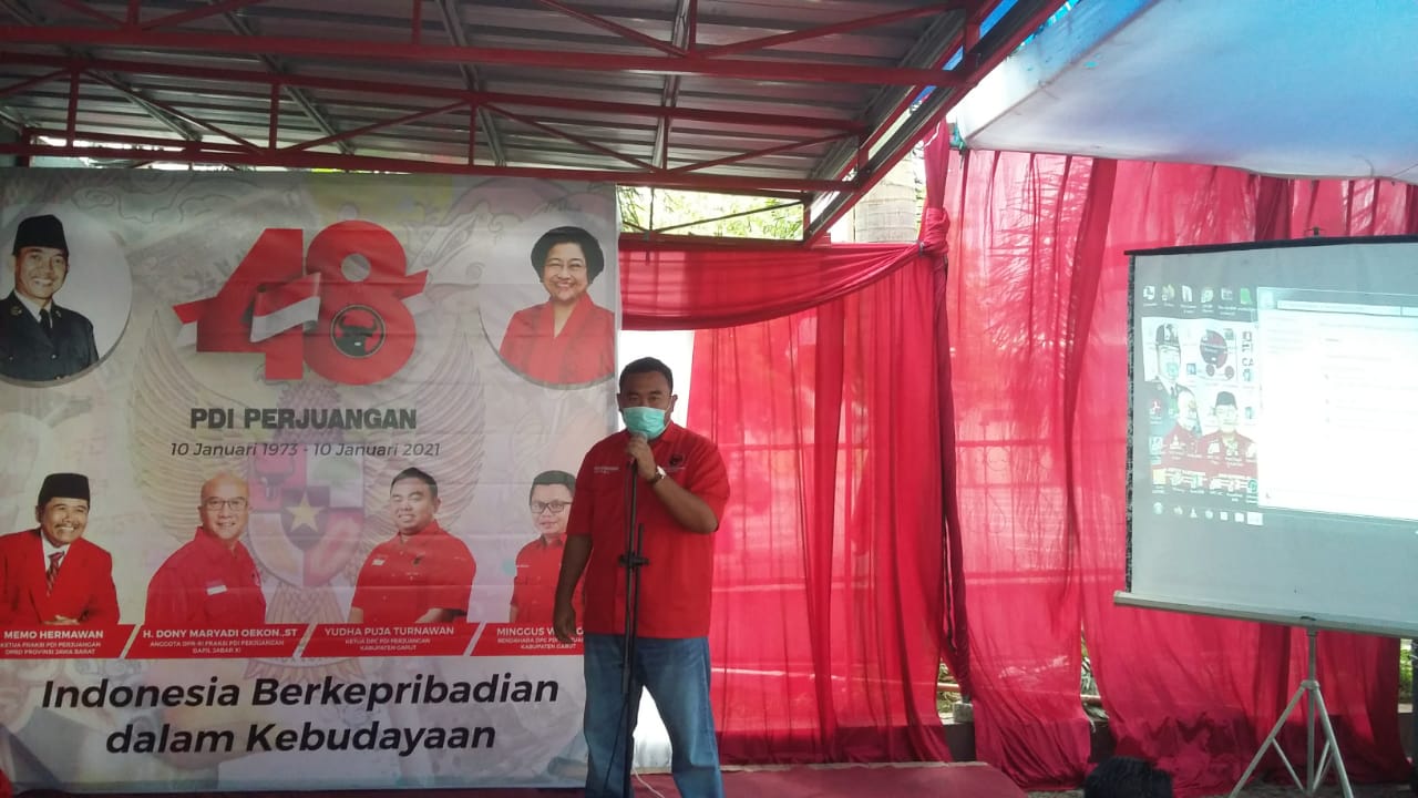 GARUT,koran-samudra.com- Pada Hut PDI Perjuangan Ke 48,Ketua DPC PDI Perjuangan Kabupaten Garut Yudha Puja Turnawan mengintrusikan seluruh pengurus Badan DPC,sayap DPC,Anak Cabang dan Ranting beserta Anak ranting untuk mengikuti Zoom Meeting Bertempat di Kantor Skertariat DPC PDI Perjuangan Kabupaten Garut Jln Merdeka 157 Kec Tarogong Kidul Garut .Minggu (10/01/21).