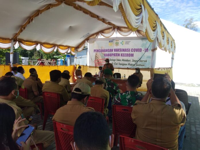 Dalam sambutannya, Bapak Bupati Kab. Keerom Tn. Piter Gusbager, S.Hut. menyampaikan bahwa dalam pencanangan Vaksin Covid-19 diharapkan dapat mensosialisasikan kepada masyarakat bahwa vaksin tersebut sudah diteliti dan diuji ratusan bahkan ribuan kali sehingga meminimalisir efek samping dan memperkebal tubuh sehingga terhindar dari Covid-19.