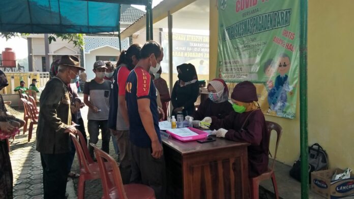Subang, koran samudra.Com -Pemerintah Desa Cidadap Kecamatan Pagaden Barat Kab.Subang kerjasama dengan UPTD Puskesmas Pagaden Barat melaksanakan Kegiatan Vaksinasi Covid-19 tahap pertama kepada 120 orang warga masyarakat yang bertempat di Puskesmas Pembantu Desa Cidadap, Senin (05/07/2021).