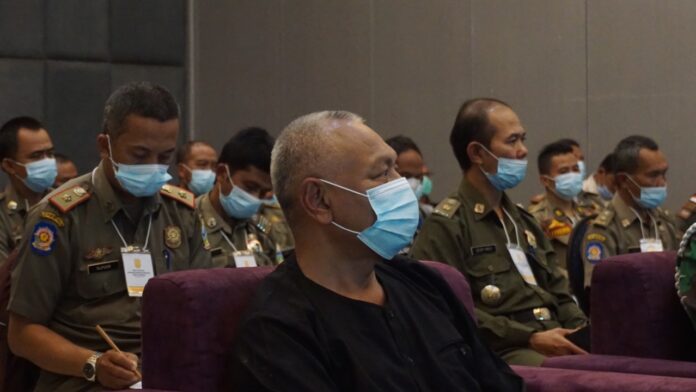 Acara yang digelar Satuan Polisi Pamong Praja (Satpol PP) Kabupaten Garut pada kegiatan Rapat Koordinasi dan Sosialisasi Penanganan Perda (Peraturan Daerah) dan Perkada (Peraturan Kepala Daerah) dalam rangka Upaya Meningkatkan Ekonomi dan Sinergitas Antar Provinsi, Kabupaten, Kecamatan dan Intansi Samping yang diselenggarakan di Hotel Harmoni, Jl. Cipanas Baru, Kecamatan Tarogong Kaler, Kabupaten Garut, Kamis (25/3/2021). Rakor ini dibuka Sekretaris Daerah (Sekda) Kabupaten Garut, Nurdin Yana, diikuti 50 peserta dari PNS (Pegawai Negeri Sipil) Satpol PP beserta SKPD (Satuan Kerja Perangkat Daerah) lainnya.
