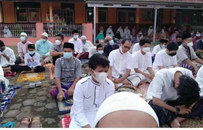 Shalat Aidul Fitri 1 Syawal 1442 Hijriah kali ini di lapang komplek SD Palabuan.