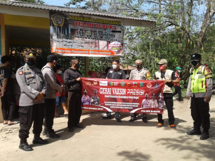 Subang, koransamudra.Com- Pemerintah Desa (Pemdes) Pusakaratu Kecamatan Pusakanagara Kab.Subang bekerjasama UPTD Puskesmas Pusakanagara serta tim gugus tugas covid-19 memberikan vaksinasi sinovac Gratis kepada warga masyarakat Dusun Karangsari, yang bertempat di Pos Yandu Sakura 4, Kamis (08/07/2021).