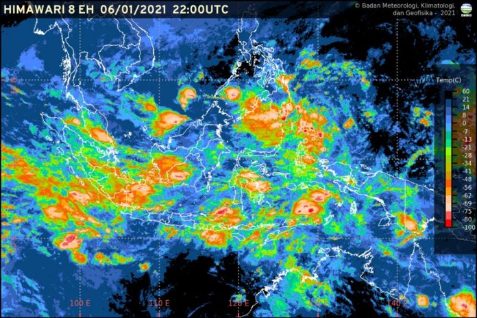 Peringatan dini: waspada potensi hujan yang dapat disertai kilat/petir dan angin kencang pada siang/sore hingga malam hari.**Editor